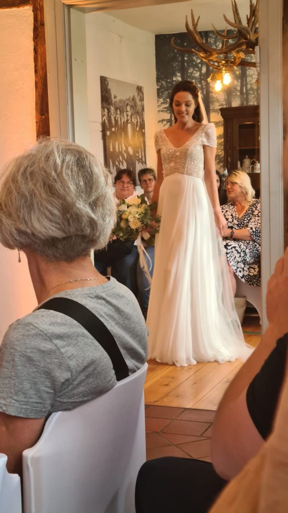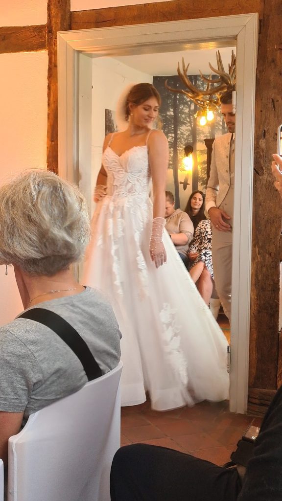 Neben der Modenschau gab es in den liebevoll gestalteten Räumlichkeiten des Hochzeitshofes noch vieles mehr zu entdecken. Ausstellerinnen und Aussteller informierten über Dekoration, Floristik, Schmuck, Fotografie und kulinarische Angebote. Auch Dienstleister für Musik und Unterhaltung standen beratend zur Seite. Die Gäste lobten die Vielfalt des Angebots und die herzliche Atmosphäre.